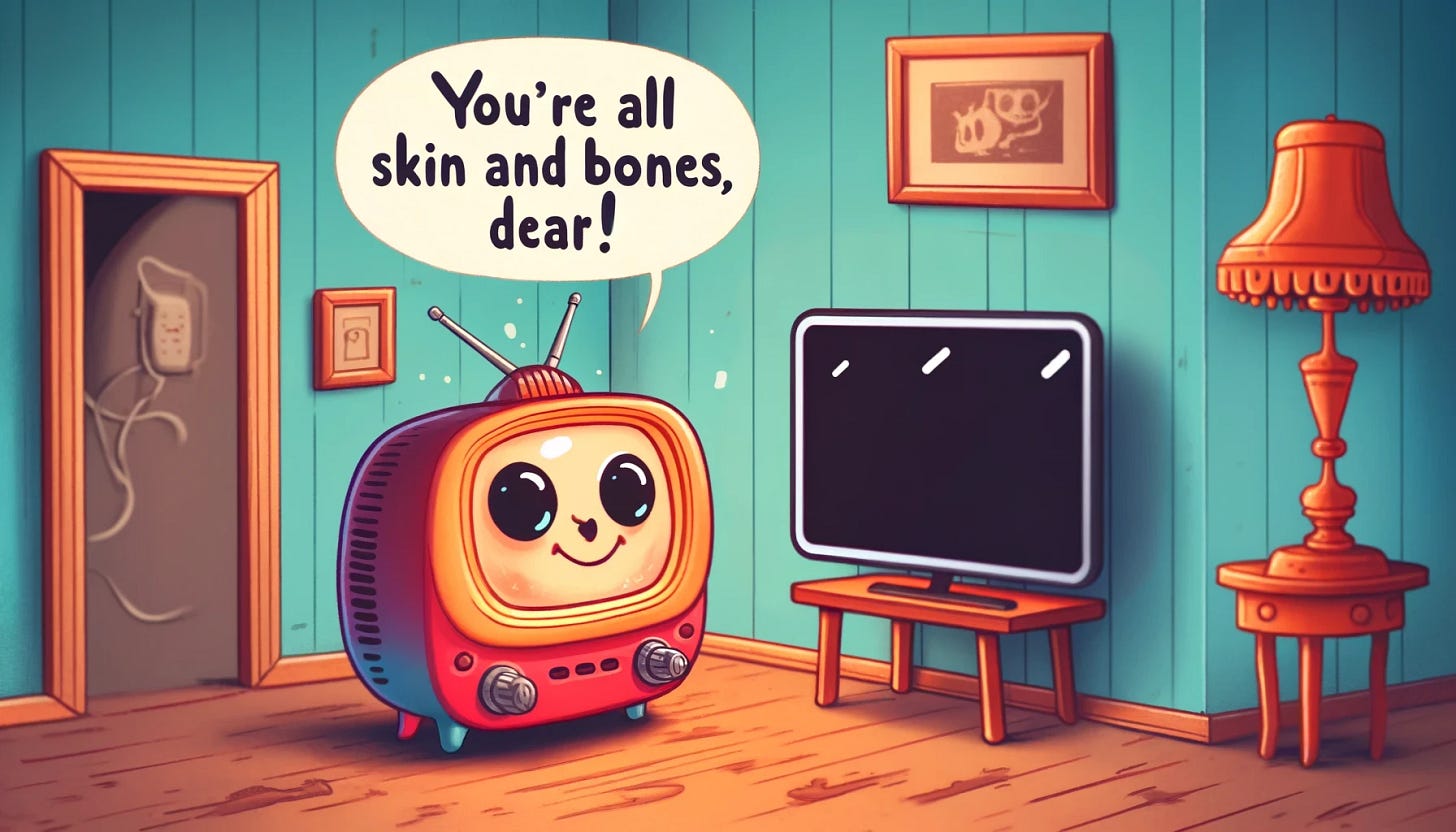 AI Jest Daily #325"You're all skin and bones, dear!"Daniel NestMay 02, 2024862ShareLoading...Subscribe to get a new AI cartoon every day.SubscribePreviousNext